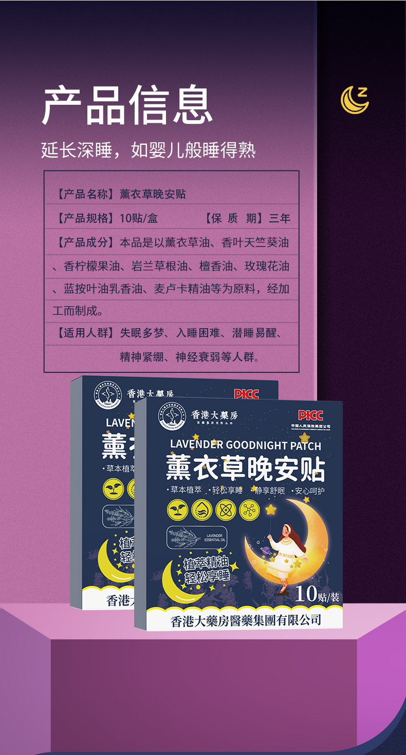 【促进睡眠】香港大药房薰衣草晚安贴失眠多梦入睡困难10贴/盒