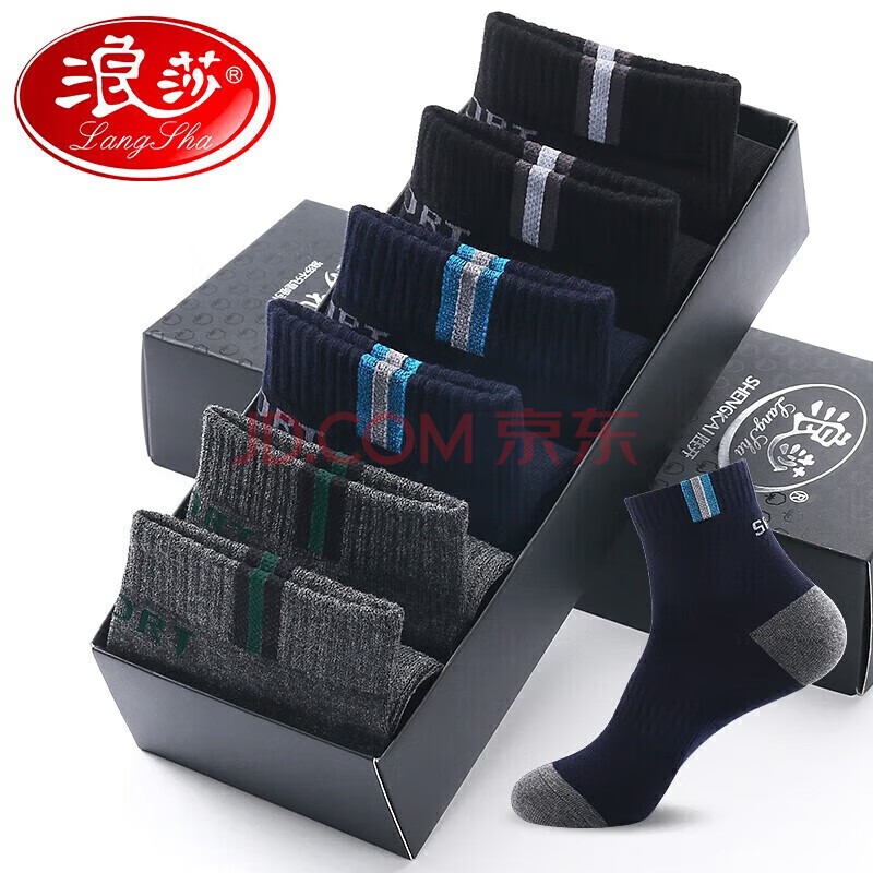 浪莎袜子男纯棉男袜男士运动休闲全棉吸汗透气中筒棉袜6双