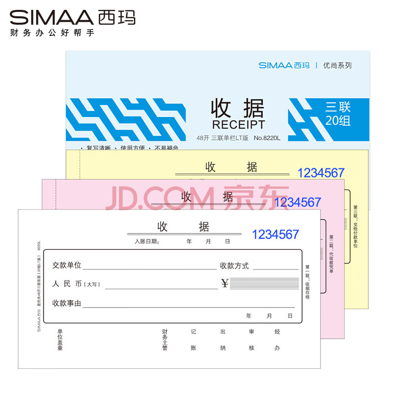 西玛(SIMAA)三联单栏收据 48开 175*92mm 20组/本 10本装 财务手写收据单无碳复写收款送货单据本