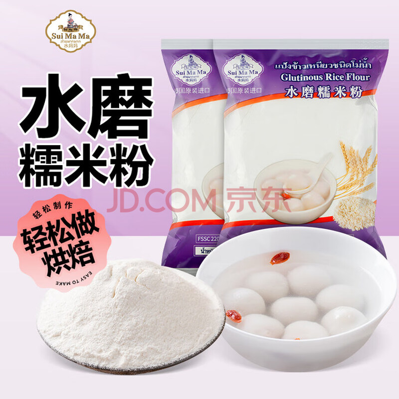 水妈妈泰国进口 水磨糯米粉 汤圆元宵糯米糍粑雪媚娘冰皮月饼500g*2袋装
