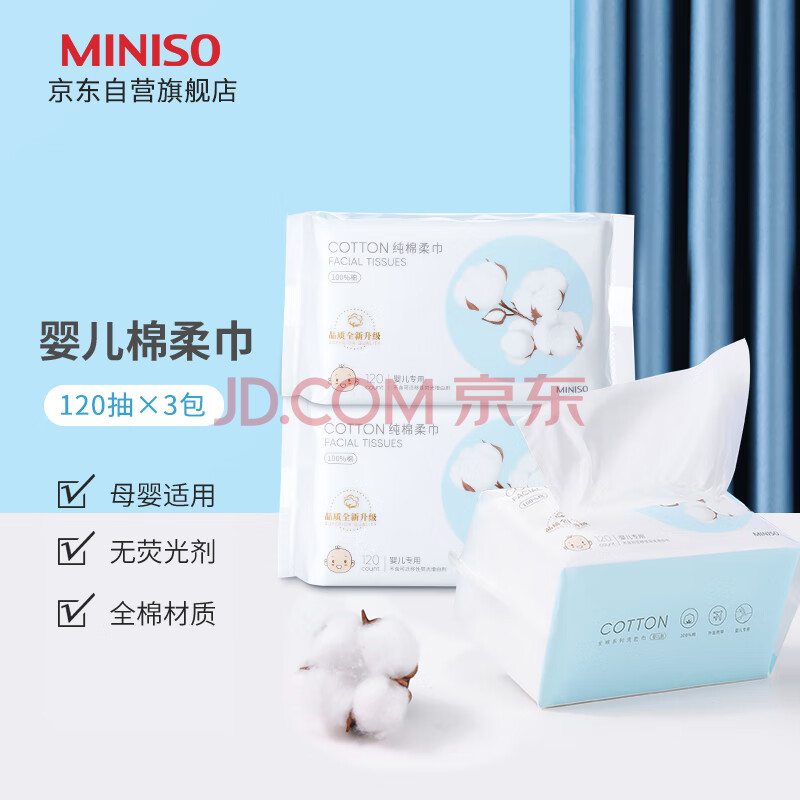 名创优品(MINISO)一次性洗脸巾全棉婴儿洗脸巾棉柔巾干湿两用洁面巾纯棉 120抽*3包