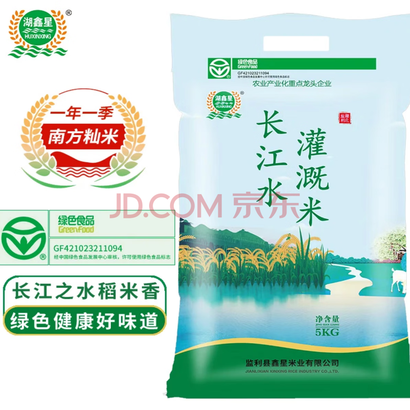 湖鑫星 长江水灌溉米 丝苗米 绿色食品认证 南方籼米 湖北长粒大米10斤