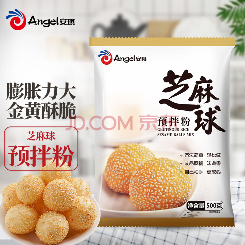 安琪芝麻球预拌粉手工家用油炸空心芝麻球麻团糯米麻园粉烘焙原料500g