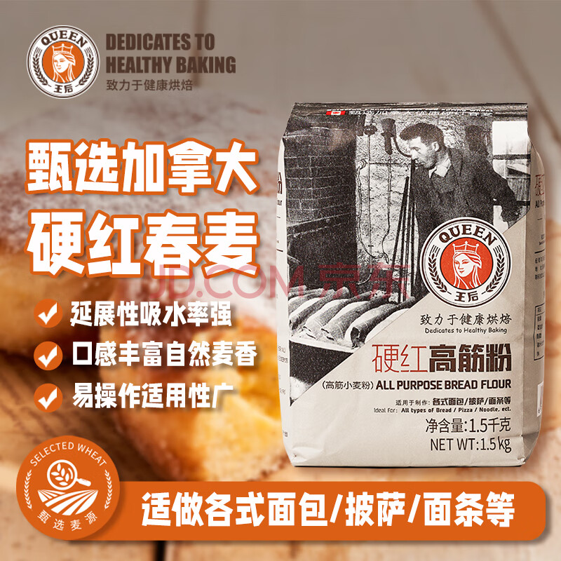 王后硬红高筋粉1.5kg家用烘焙小麦粉软欧餐包披萨面包粉吐司面粉3斤