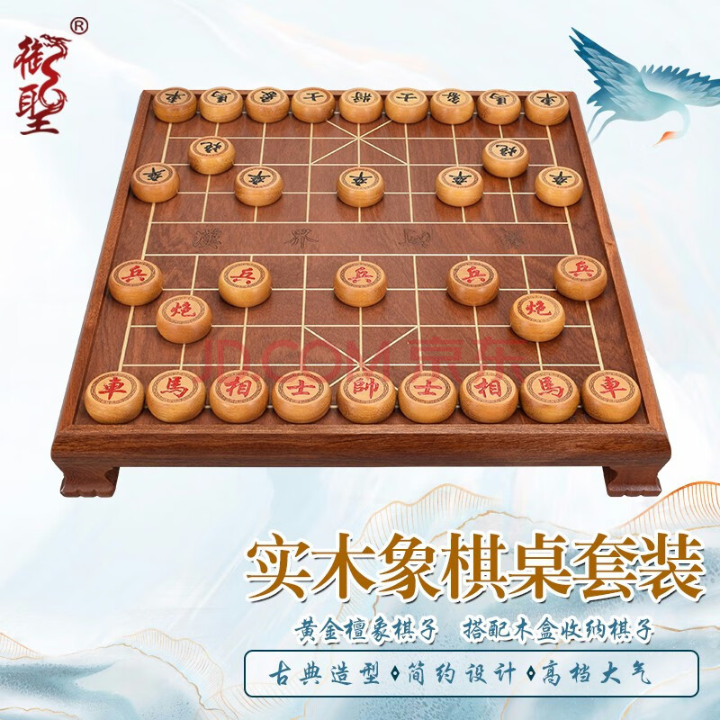 御圣中国象棋桌大号实木象棋盘成人高档5分黄金檀木橡棋套装桌上盘