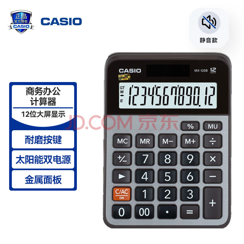卡西欧(CASIO)MX-120B 商务计算器 小型机 灰色 商用