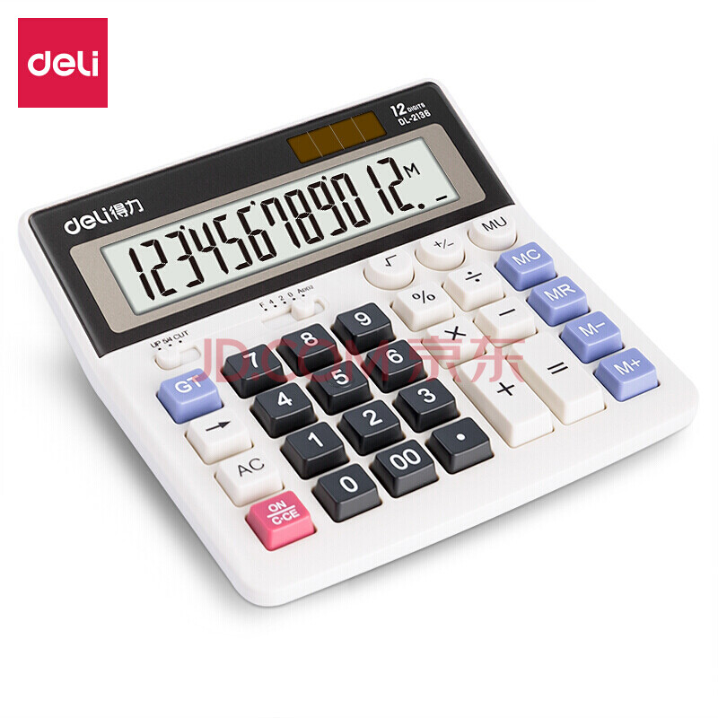 得力(deli) DL-2136计算器双电源电脑按键计算器12位大屏横式桌面计算机财务及银行人员办公用品白色