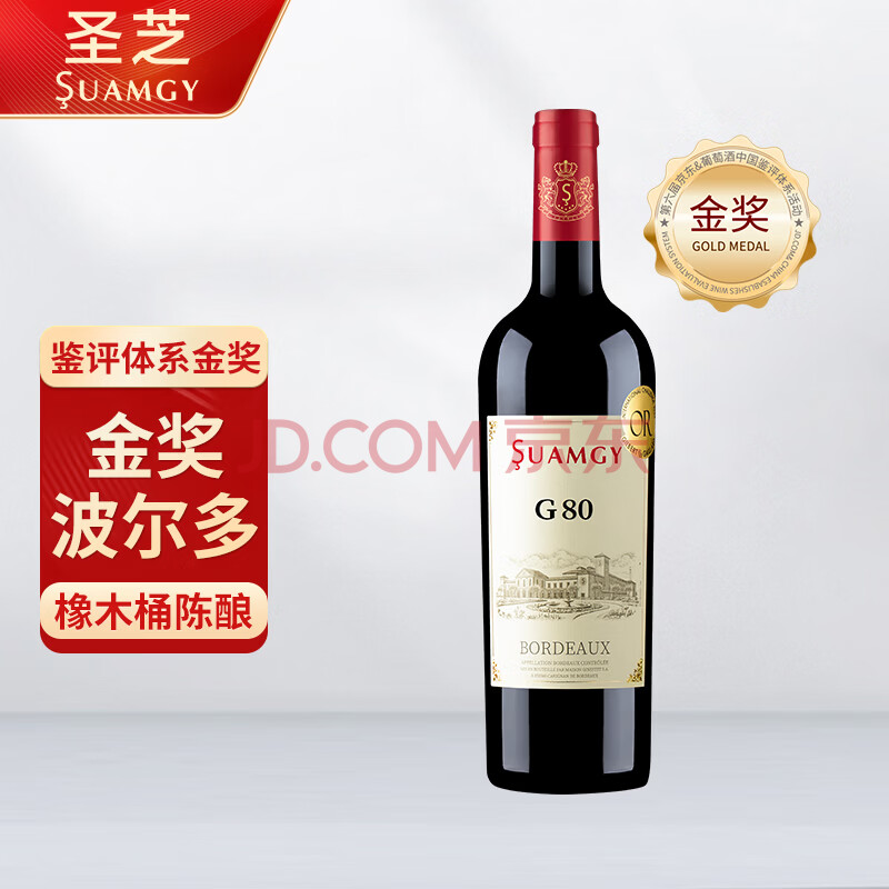 圣芝(suamgy)G80波尔多AOC赤霞珠干红葡萄酒 750ml 单支装 法国原瓶进口红酒