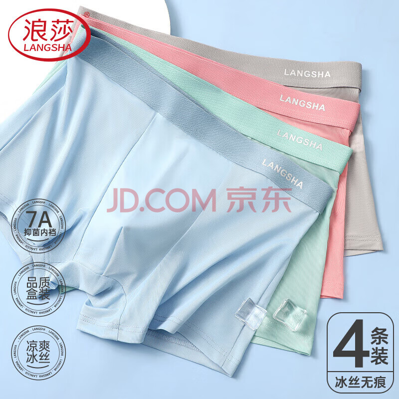 浪莎内裤男士冰丝感抗菌夏季无痕透气青少年平角中腰纯色四角裤衩
