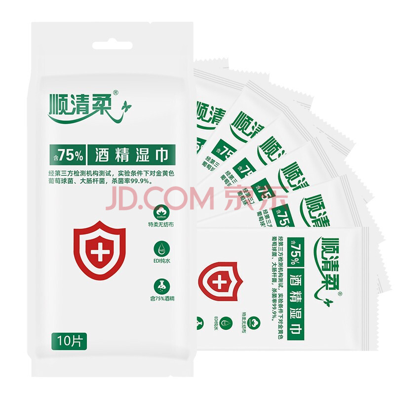 顺清柔酒精湿巾10片*10包 单片独立包装便携卫生湿巾酒精棉片 无香提装
