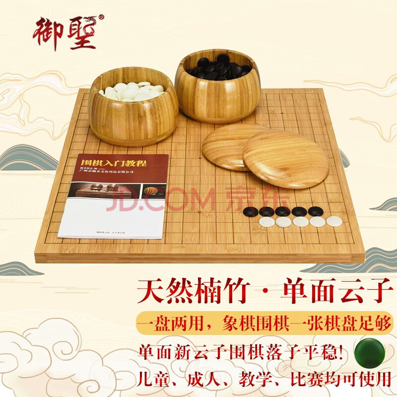 御圣围棋棋盘五子棋天然楠竹实木围棋罐单面新云子象棋围棋二合一套装