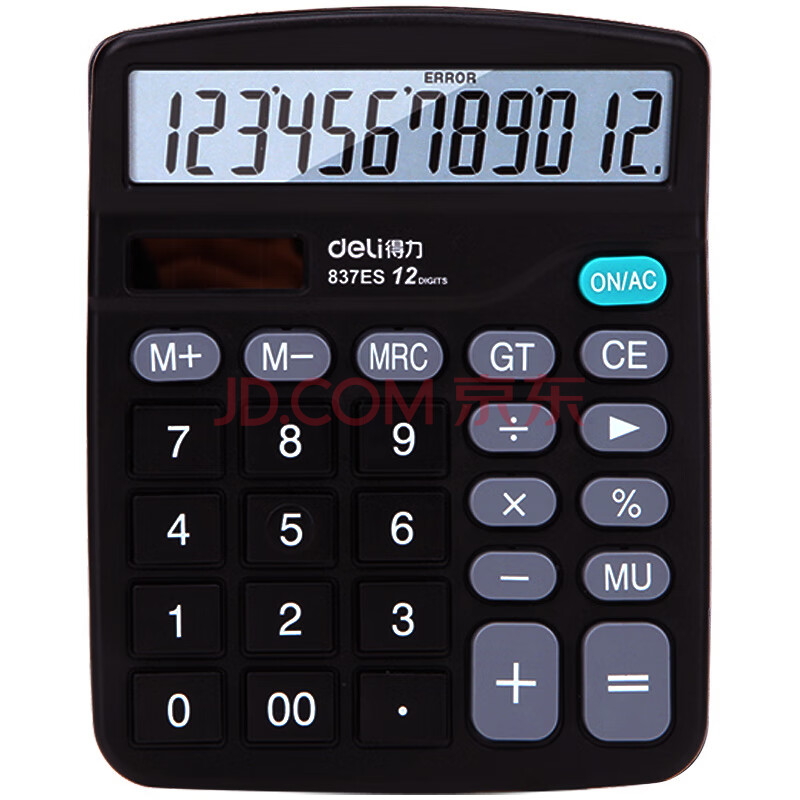得力(deli)【全网低价】双电源桌面办公计算器 12位大屏幕桌面计算机 办公文具用品 837ES