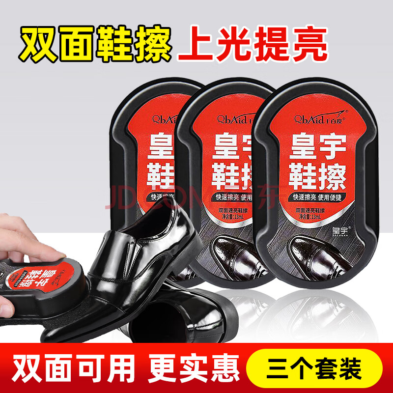 皇宇双面速亮鞋擦 通用皮鞋油护理剂快速方便擦鞋海绵套装3支装