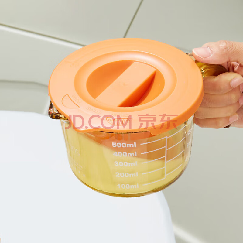 康宁(VISIONS)烘焙玻璃带刻度耐热玻璃量杯热奶500ml量杯(带盖)