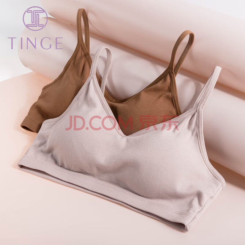 TINGE纯色棉运动美背内衣女无钢圈文胸薄款2件 白色+浅卡其 L