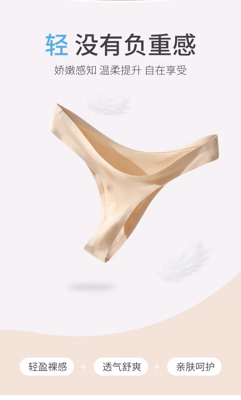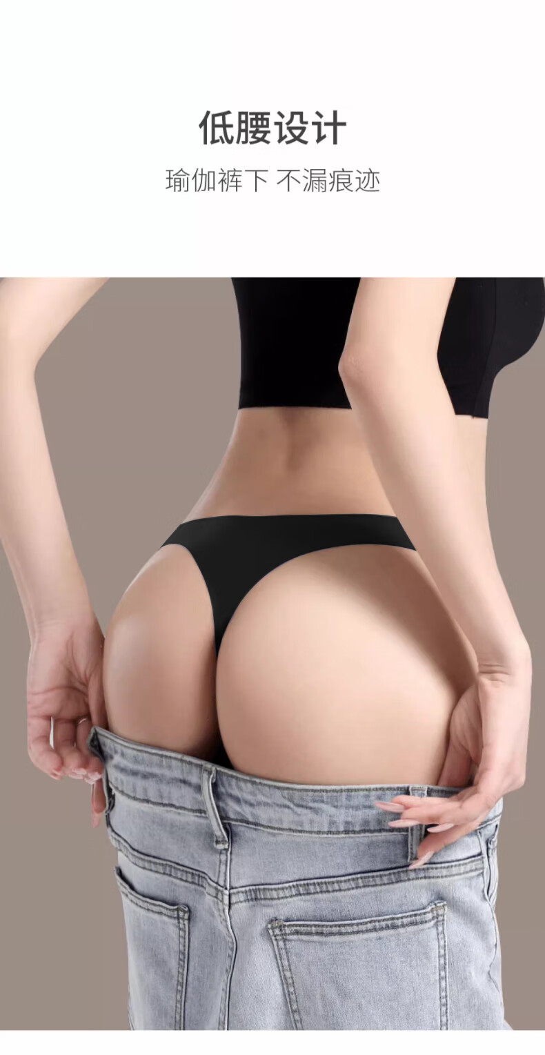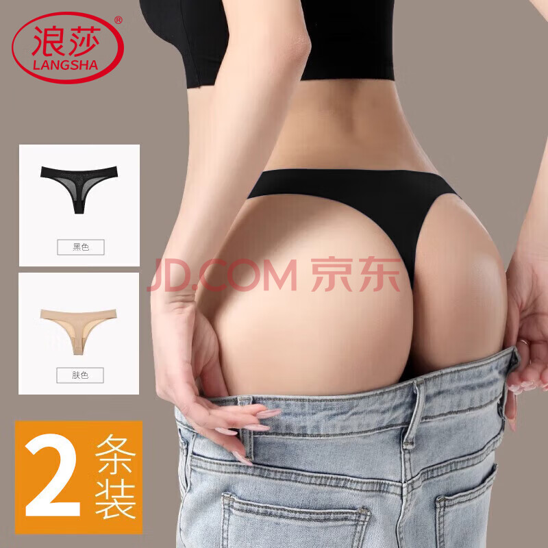 浪莎内裤女冰丝无痕丁字裤一片式超薄性感低腰纯色运动健身T裤