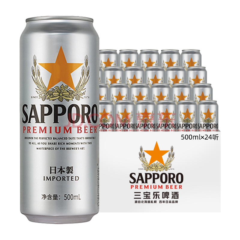 三宝乐札幌精酿啤酒【日本进口】500ml*24听整箱装百威集团元宵送礼