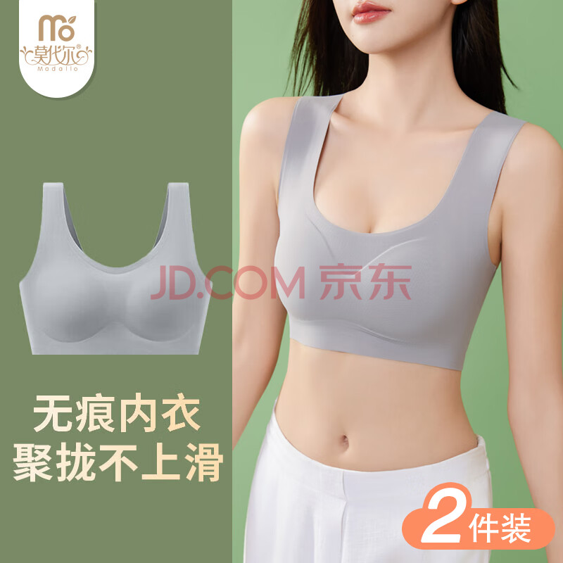 莫代尔2件运动内衣女文胸薄款粉底液无痕背心无钢圈美背跑步大码胸罩XL