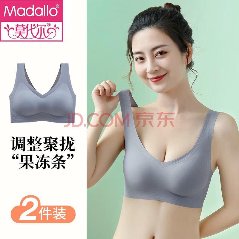 莫代尔2件无痕运动内衣女无钢圈文胸罩美背粉底液小胸四季薄款透气抹胸L