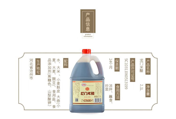 龙和宽 龙门米醋 2.1L 酿造食醋 饺子点蘸拌炒调味料