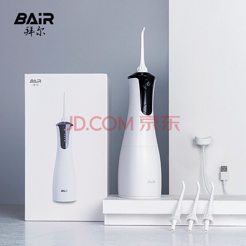 拜尔(BAIR)电动冲牙器M4 便携式冲牙器情侣家用正畸洗牙器300ML大水箱+磁吸式充电 白色