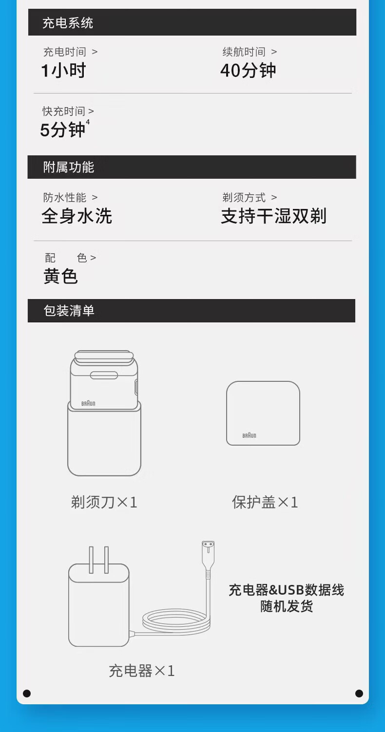 博朗【出行必备】朱一龙同款M60剃须刀电动迷你全身水洗往复式刮胡刀男士差旅复古便携
