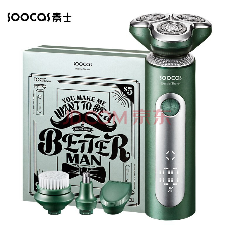 素士(SOOCAS)刮胡刀 男士全身水洗干湿双剃 多功能凌朗顺滑型电动剃须刀 S5 墨绿