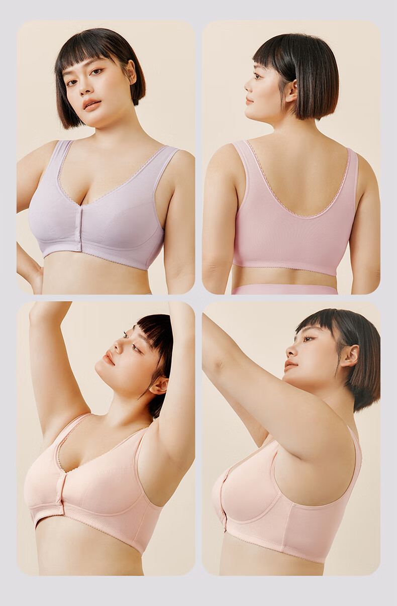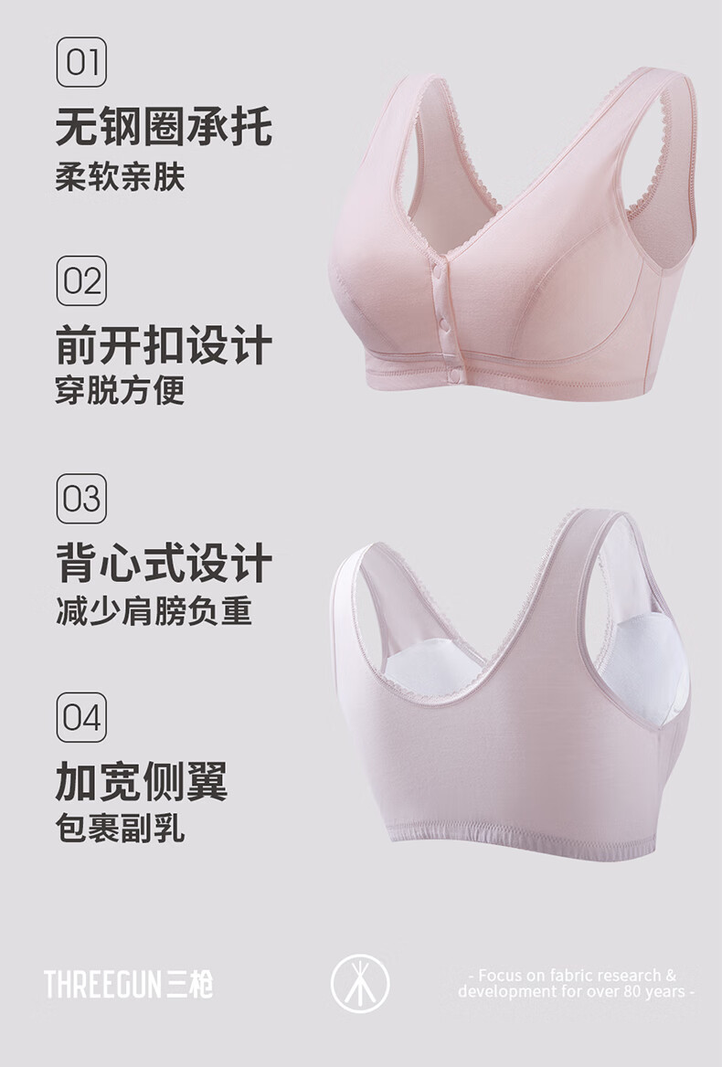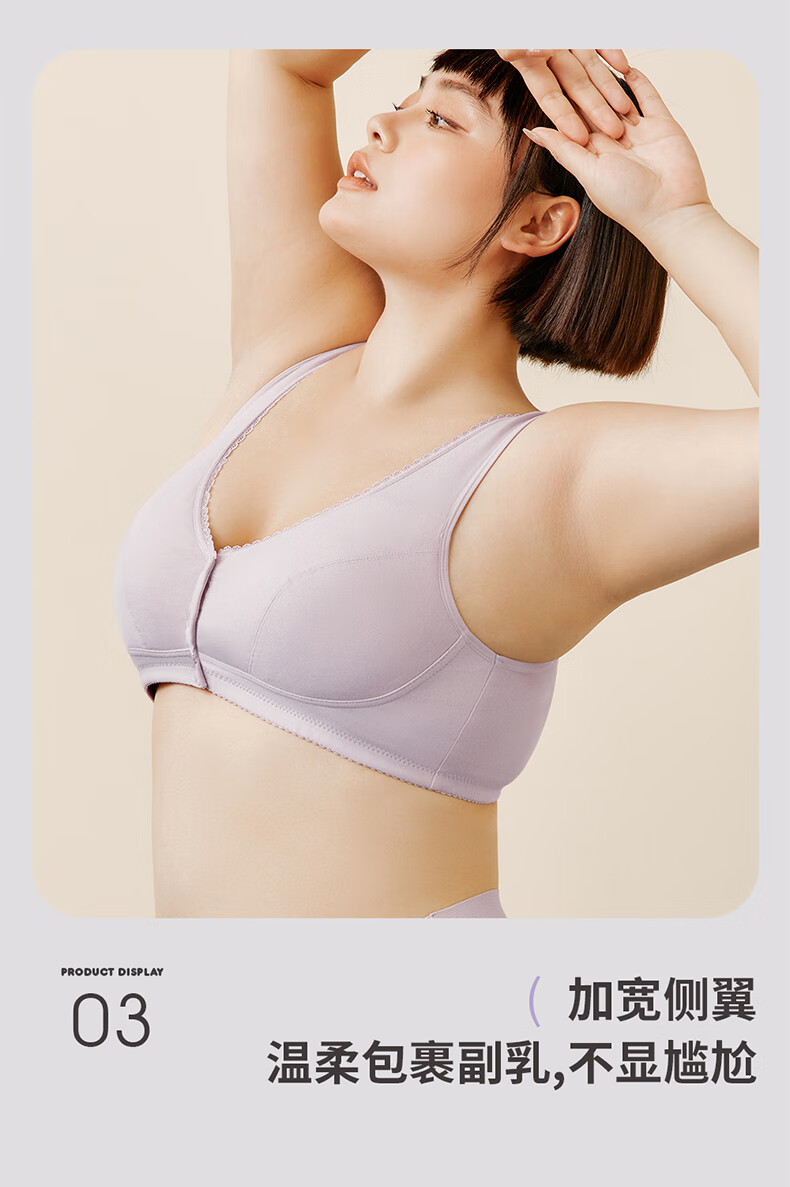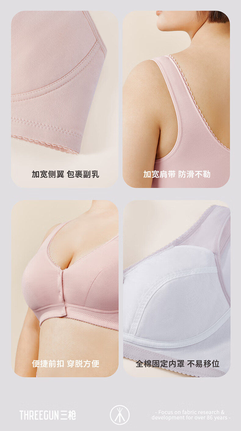三枪【无痕无钢圈】文胸女全罩杯前开扣大胸显小U型美背文胸