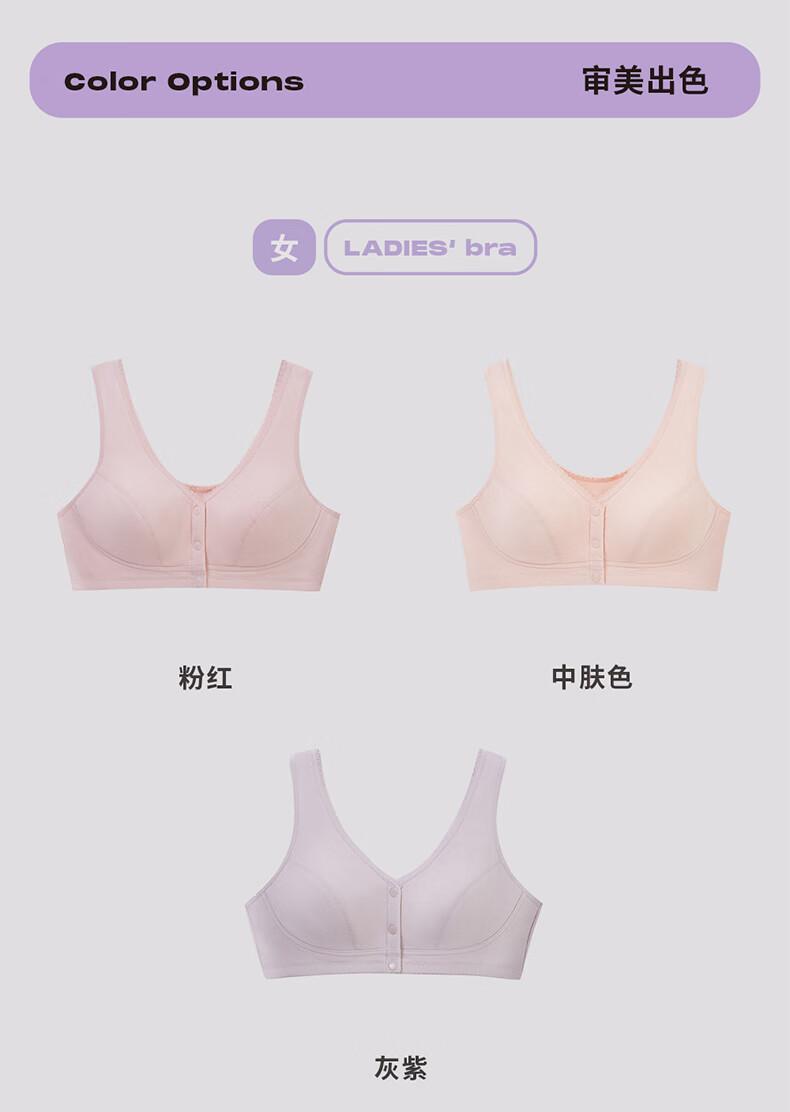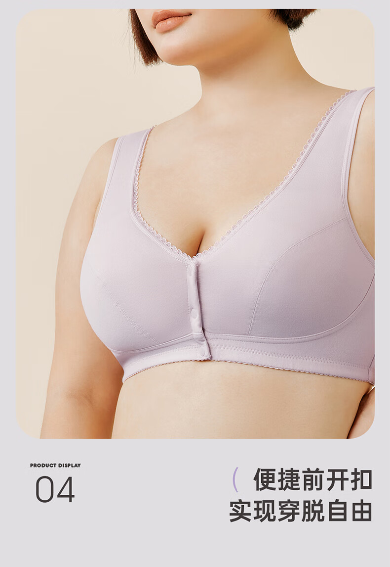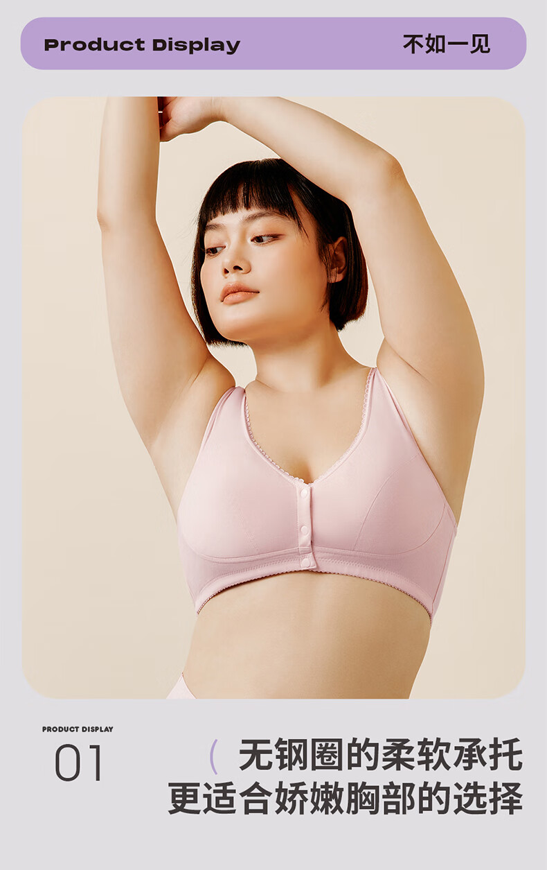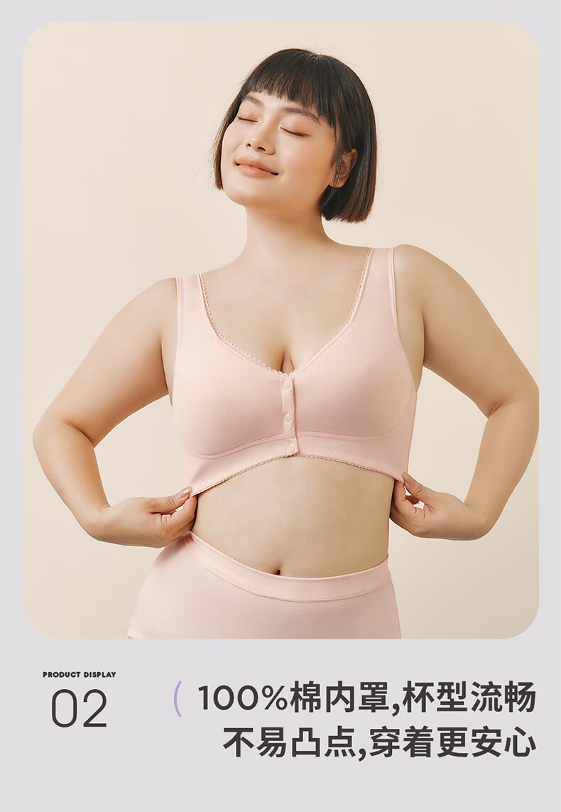 三枪【无痕无钢圈】文胸女全罩杯前开扣大胸显小U型美背文胸