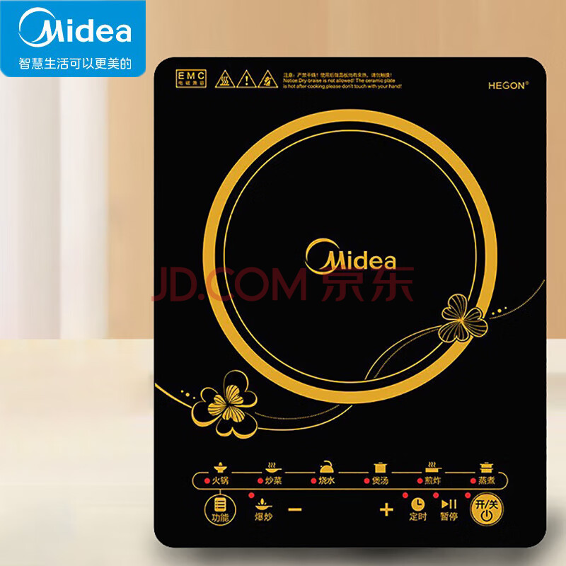 美的(Midea)电磁炉 家用2100W大火力汉森高强面板 电磁灶智能定时 C21-RT2160