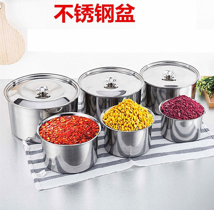丹诗致远 不锈钢盆味盅带盖油鼓加厚调料盆 特厚18CM盆子(带盖)