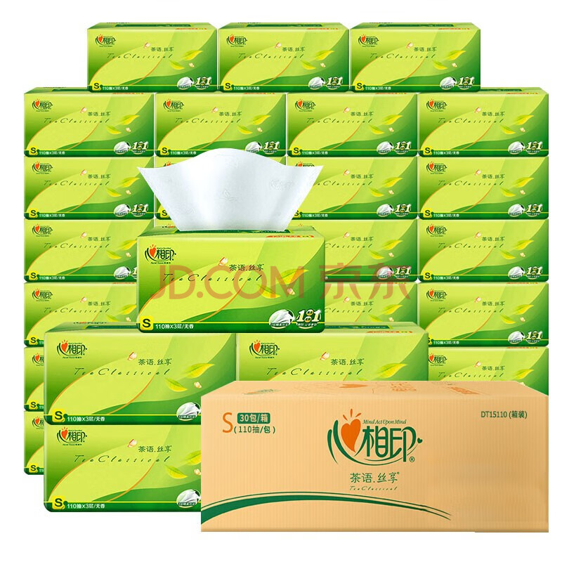 心相印抽纸巾整箱实惠装餐巾纸家用卫生纸110抽30包面巾纸家庭擦手纸