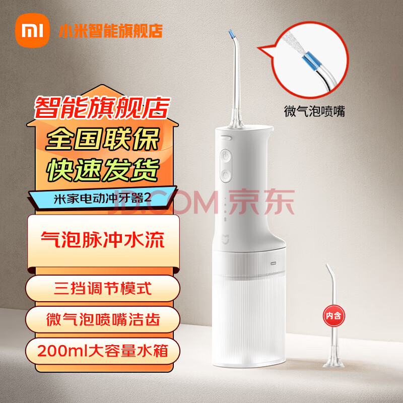 小米电动冲牙器2 超声波洗牙器牙齿冲洗器便携实用牙结石清洁器儿童青少年成人男女情侣生日礼物