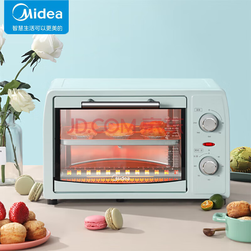 美的(Midea)电烤箱 家用小烤箱 上下石英管均匀烘焙 12L 多功能迷你烤箱 PT12B0