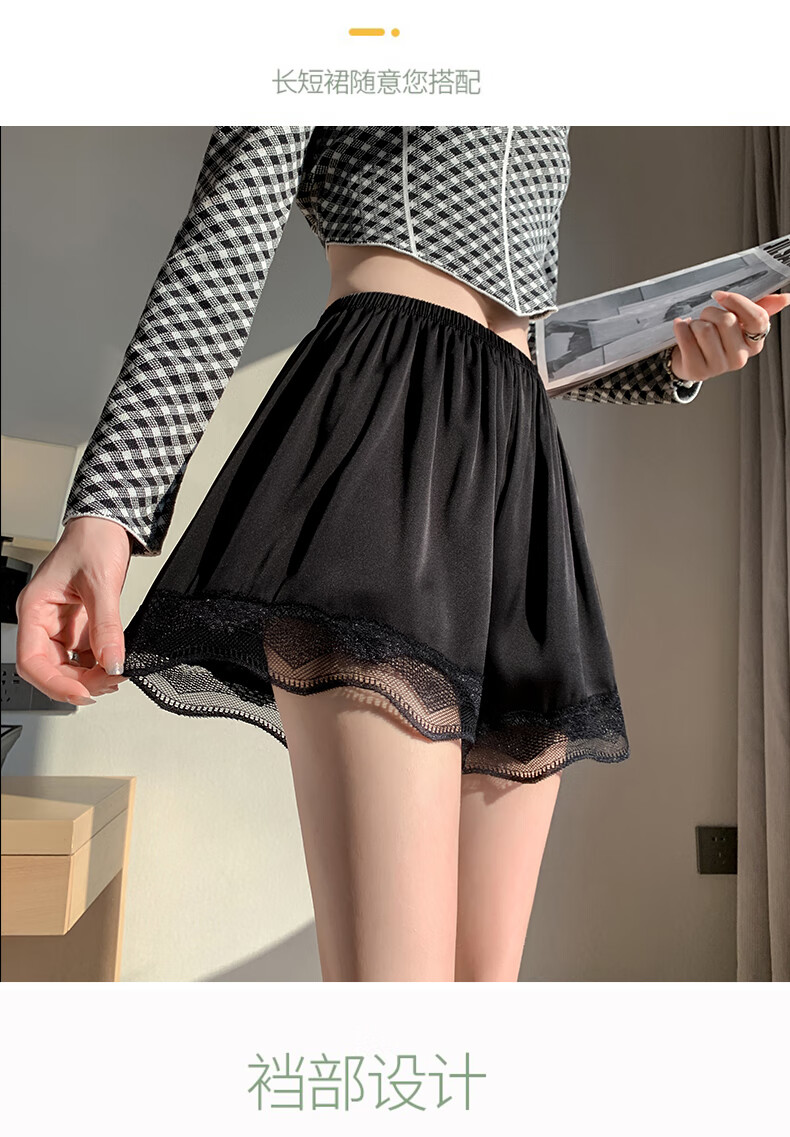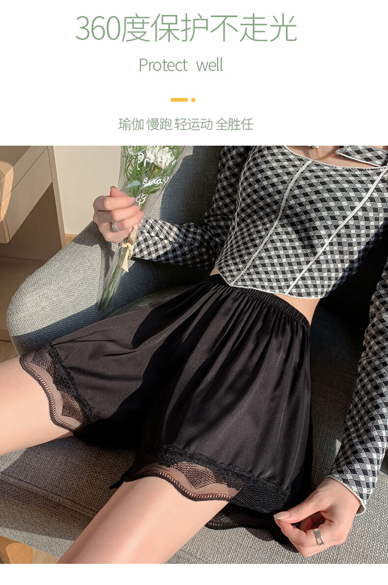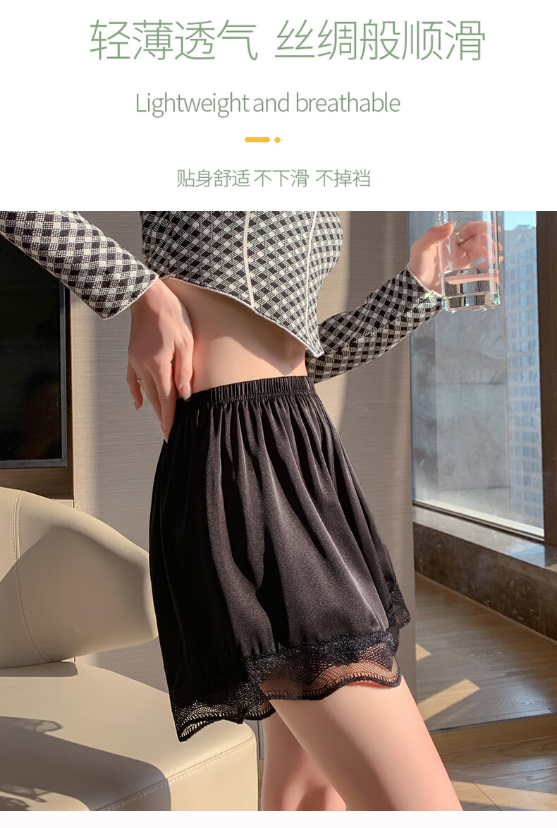 浪莎女士安全裤防走光薄款蕾丝女大码内裤性感三分裤打底裤3条2黑1肤