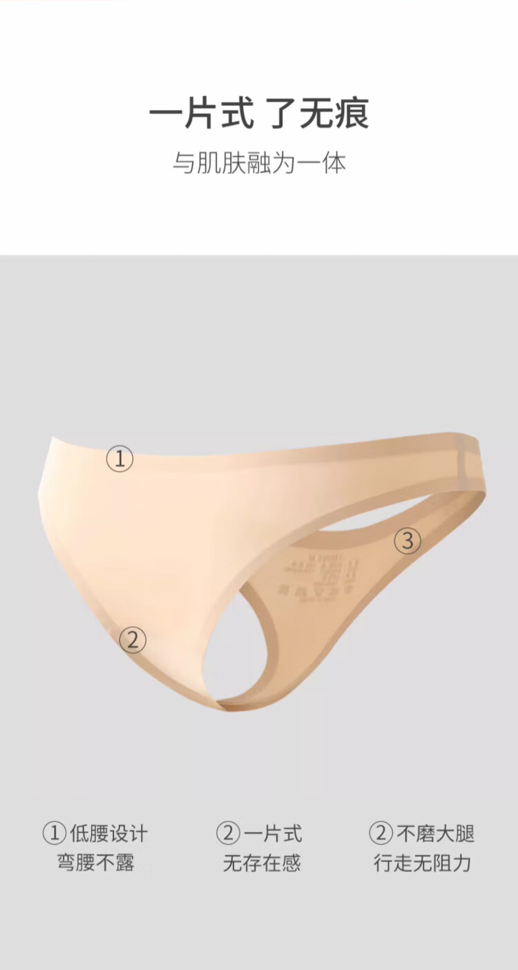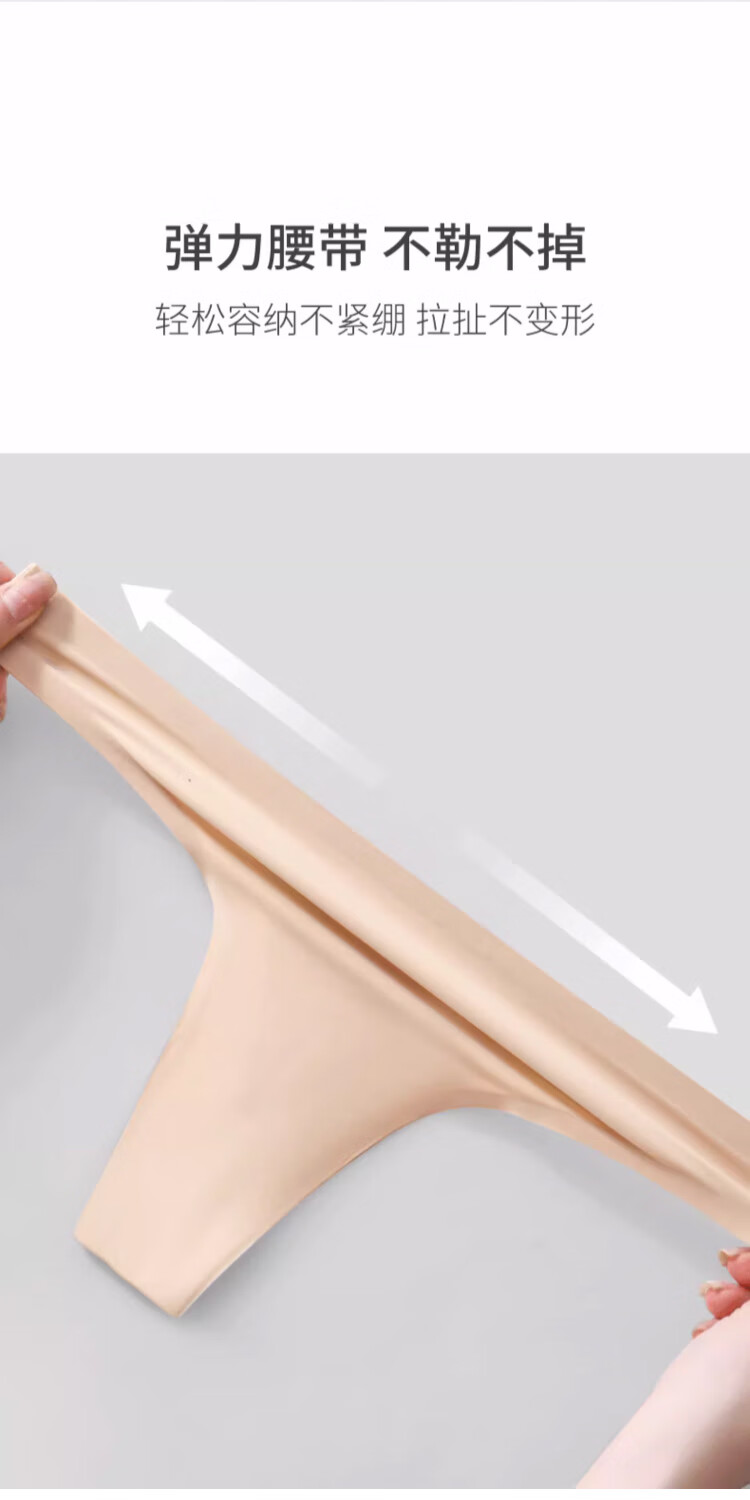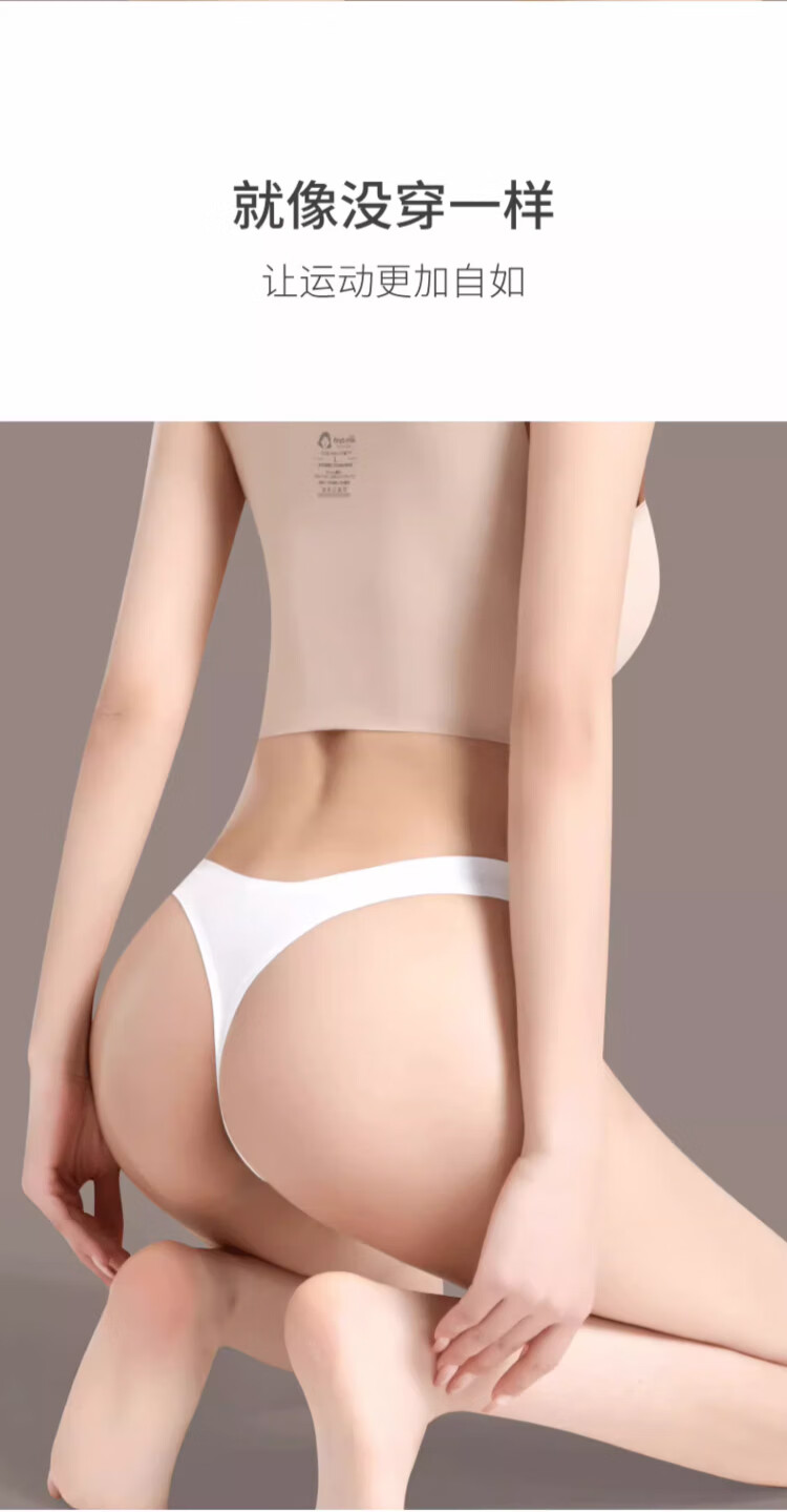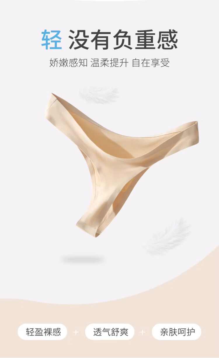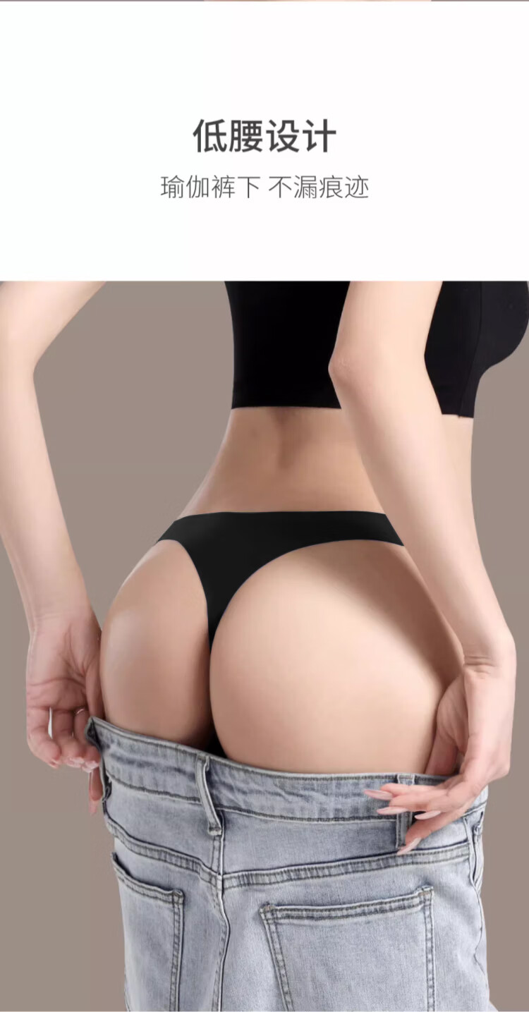 雪茜曼丁字裤内裤女无痕一片式纯色运动超薄性感低腰T裤 黑色+肤色 L