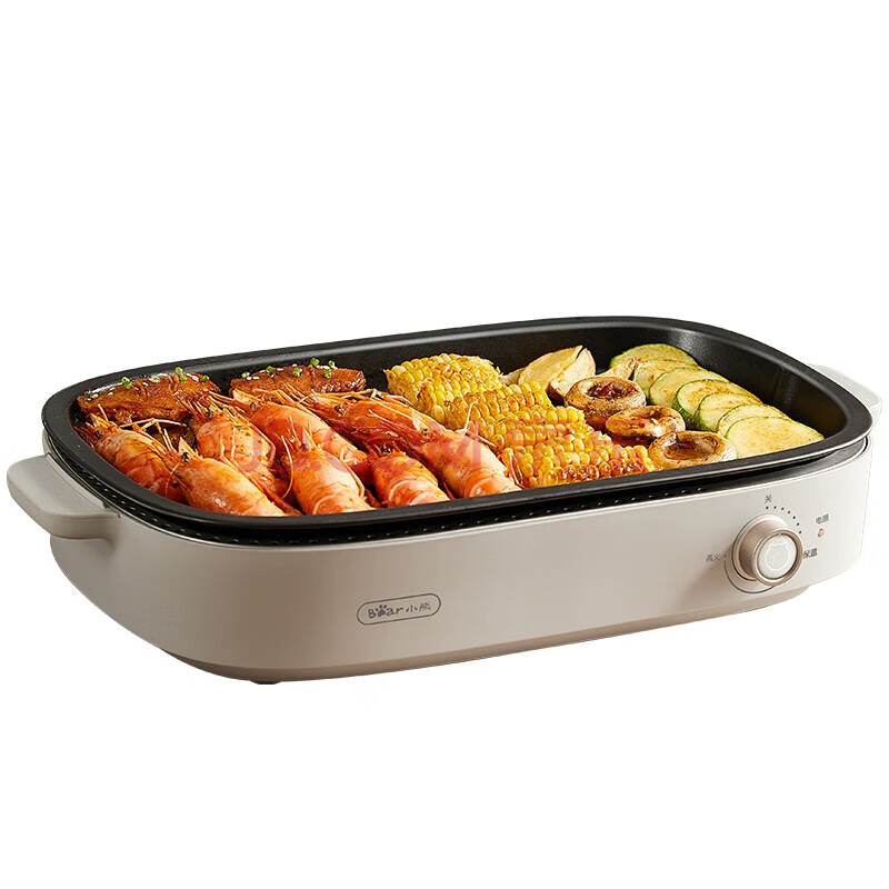小熊(Bear)烤肉锅 烤盘 电烤炉烧烤 电烤盘 电烧烤炉家用 多功能烤肉盘不粘煎烤机 暖灰400C DKL-D12Y1