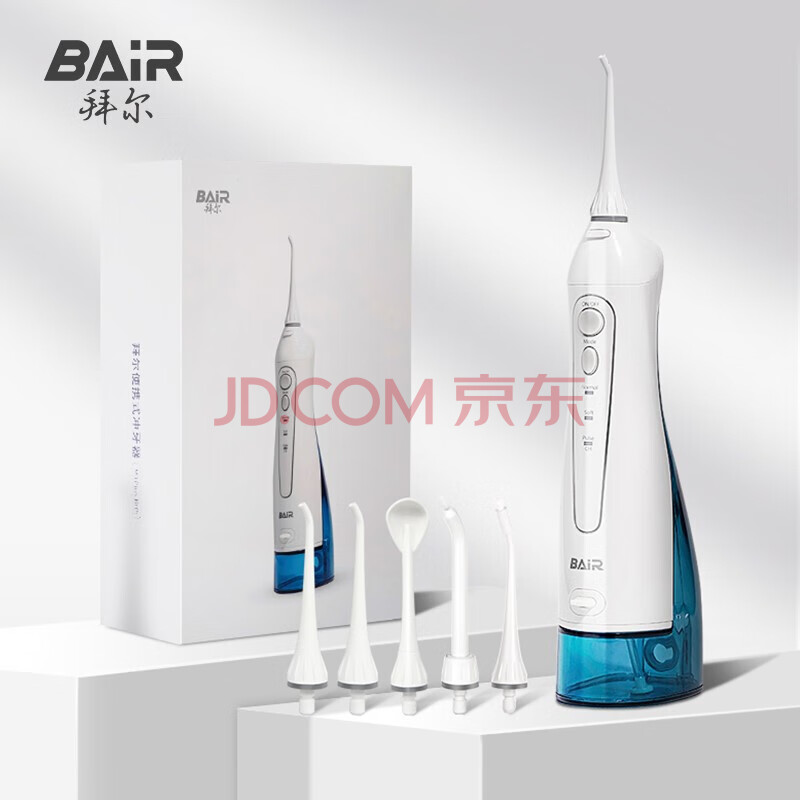 拜尔(BAIR)电动冲牙器300ml大水箱便携式清洁口腔洗牙器洁牙器牙套清洗喷嘴*5 M3Plus 白色