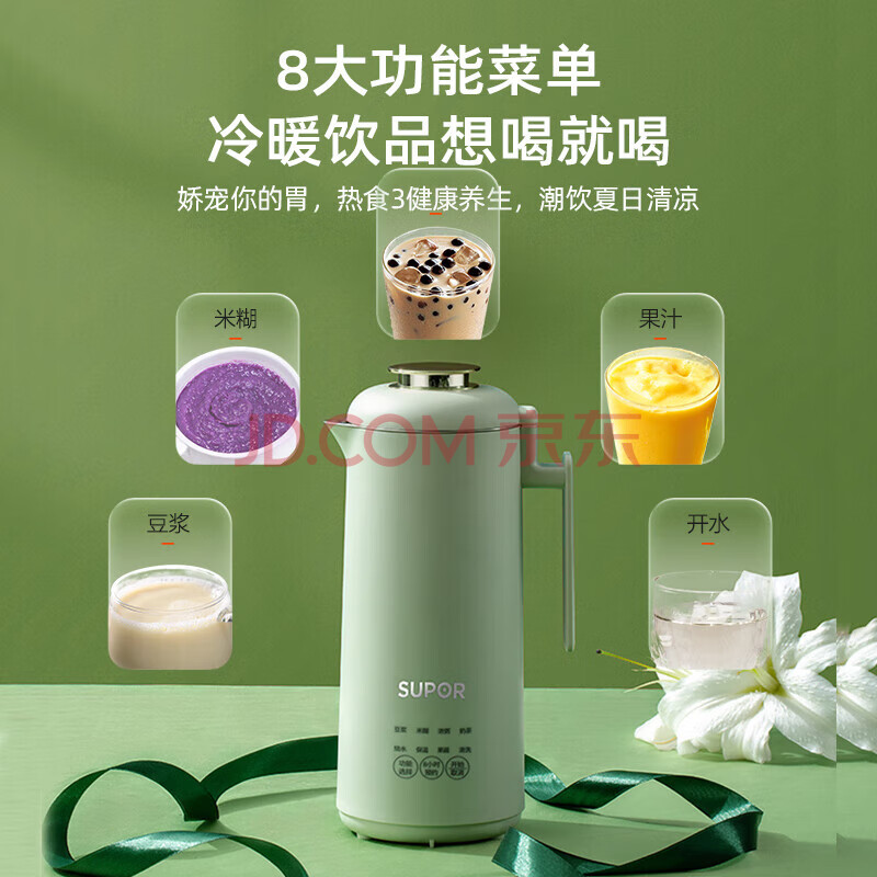 苏泊尔SUPOR 豆浆机破壁豆浆机预约迷你免洗免过滤全自动 DJ03B-P306 墨绿色