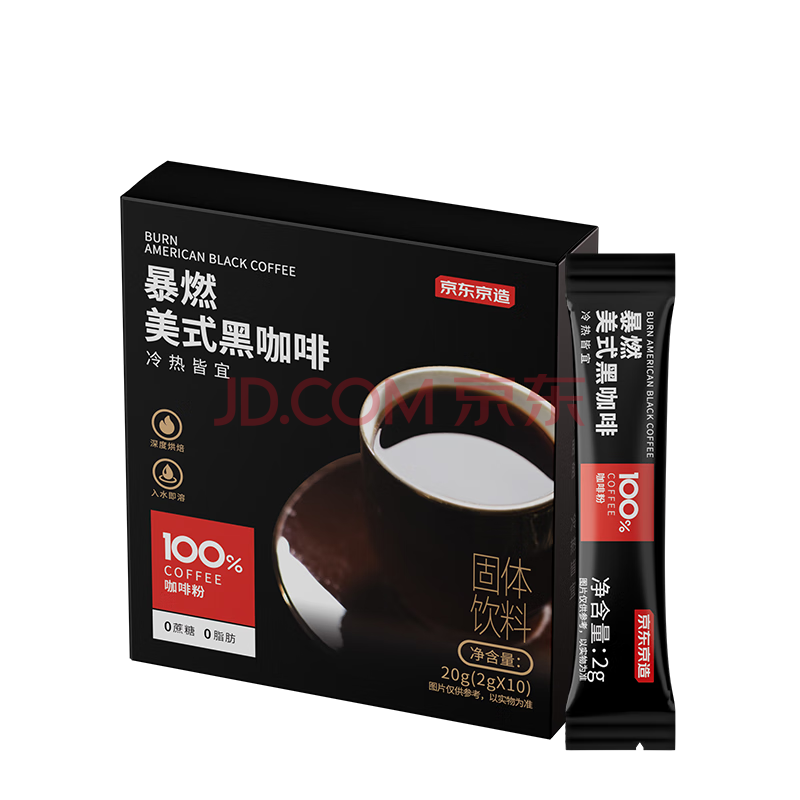 京东京造 鲜来多美式黑咖啡粉冷热速溶0脂2g*30条 运动健身燃减醇品深黑