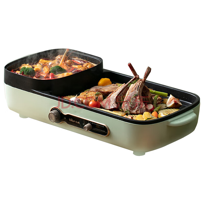 小熊(Bear)电烧烤炉 DKL-C16C1 绿色 3.4L 电烤炉家用多功能电火锅 可拆卸烤涮一体锅鸳鸯锅烤肉烧烤机
