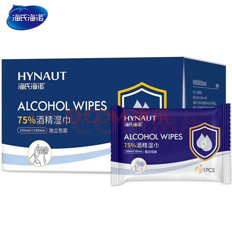 海氏海诺蓝盒75%酒精湿巾 一次性酒精棉片大号 独立包装 18*15cm*50片