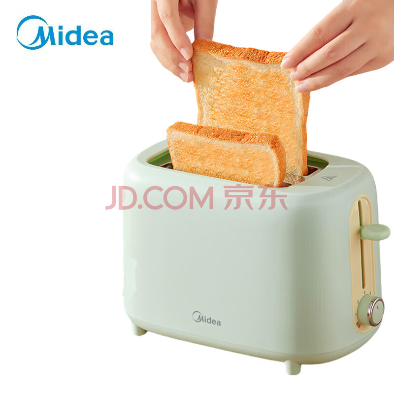 美的(Midea)多士炉面包机烤三明治面包片机全自动家用不锈钢内胆2片吐司机6档烘烤 MT-E1301