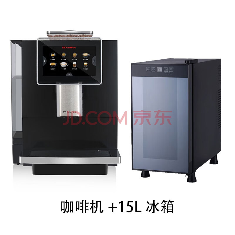 Dr.coffee咖博士F10全自动美式意式咖啡机一键磨豆自动清洗办公室商用咖啡机自定义家用奶咖机+15L冰箱组合