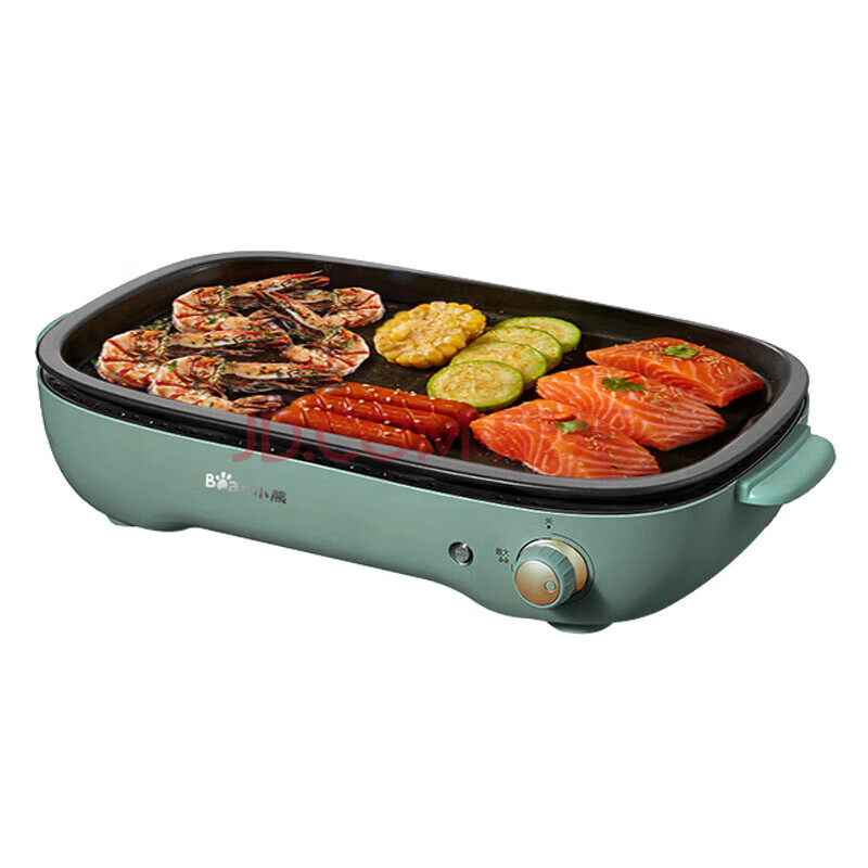 小熊(Bear)电烧烤炉 火锅烧烤一体锅 烤肉盘 电烤盘 家用煎鱼烤肉锅烤肉机不粘无烟 DKL-C12J5 绿色