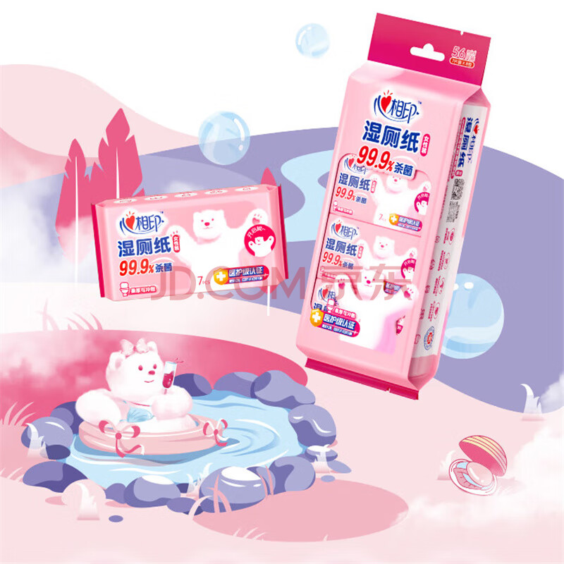 心相印 小刘鸭超迷你洁厕湿纸巾 湿厕纸 7片*8包/提*3提 XCY007+P2