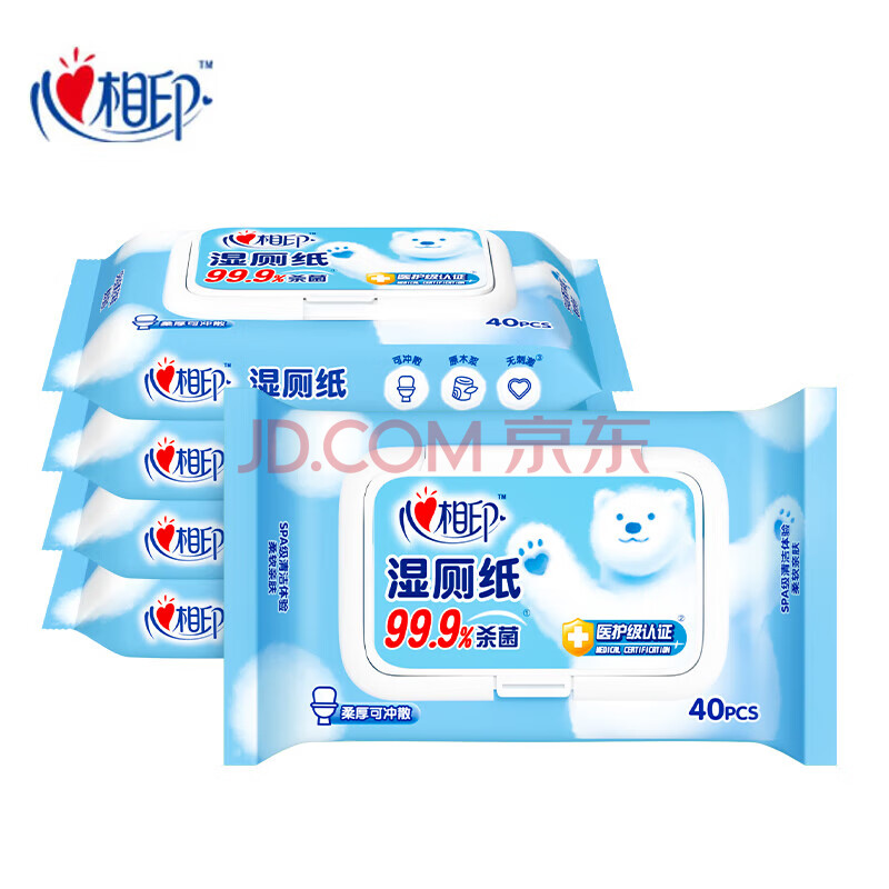 心相印湿巾 三重净湿厕纸 私处清洁搭配卷纸使用 40片/包*10包 XCY040