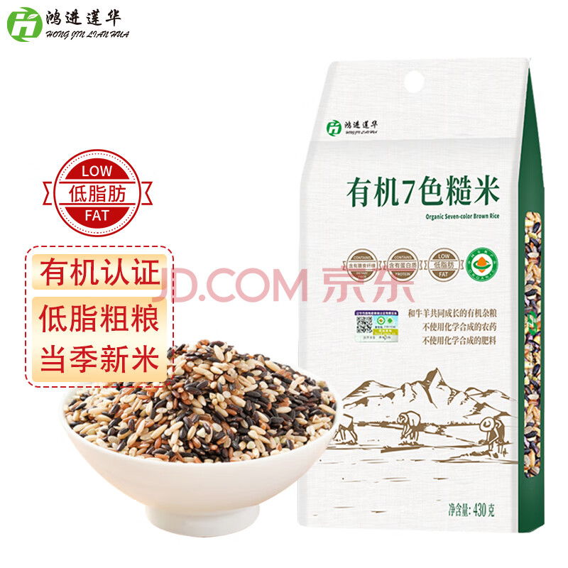 鸿进莲华有机7色糙米 430g 有机糙米黑米燕麦米血糯米五谷杂粮同熟端午