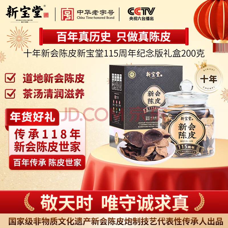 岭南新宝堂新会陈皮10年老陈皮养生茶115周年纪念版礼盒200克送礼
