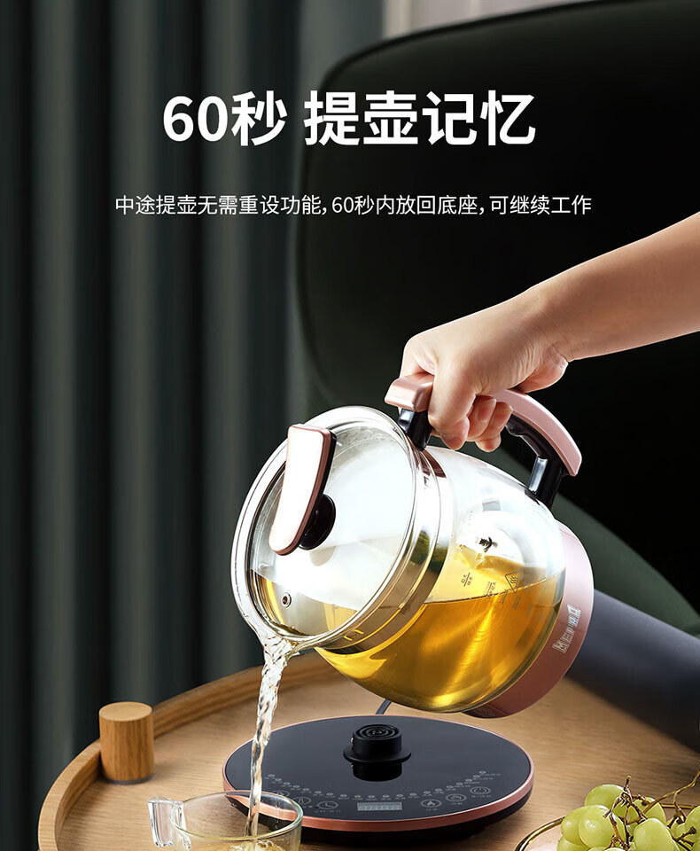 苏泊尔(SUPOR)养生壶 1.5L煮茶器花茶壶 电水壶烧水壶电热水壶开水壶 保温煮茶壶玻璃电茶壶 SW-15YJ33B